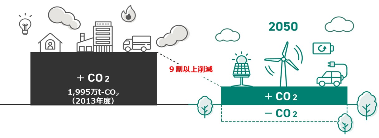 これは、現在の温室効果ガス排出を9割以上削減する非常に高い目標となりますが、県民の皆さまとともに全力で取り組んで参ります。